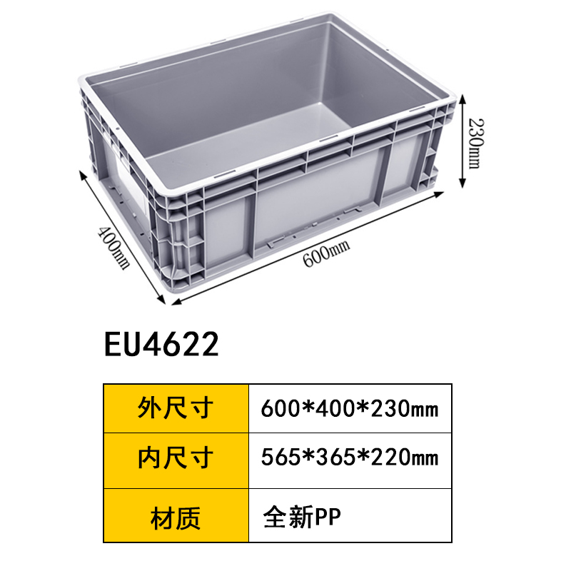 EU物流箱采用全新pp材質(zhì),采用先進(jìn)的生產(chǎn)工藝注塑而成,具有周轉(zhuǎn)方便,碼垛整齊,便于管理的特點;規(guī)格多樣,常與塑料托盤及貨架等倉儲設(shè)備配合使用應(yīng)用廣泛, 主要應(yīng)用于物流運(yùn)輸、倉儲管理、生產(chǎn)加工、零部件存儲與運(yùn)輸、廢棄物處理及產(chǎn)品展示等多個領(lǐng)域